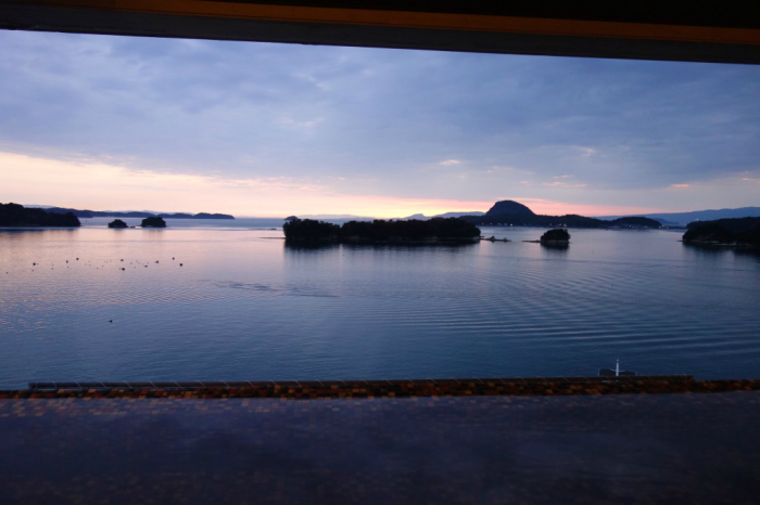 3日目 部屋から唐津の海に朝陽 が昇る |