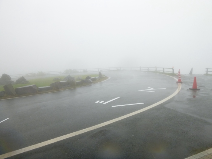 | 寒風山道路は雨と風と霧 で何も見えない 内陸に入ると雨風は 上がってきた |