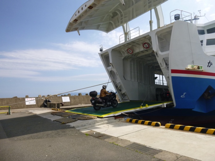 | 下りるのはバイクが最後 になります サンタカさん下船 |