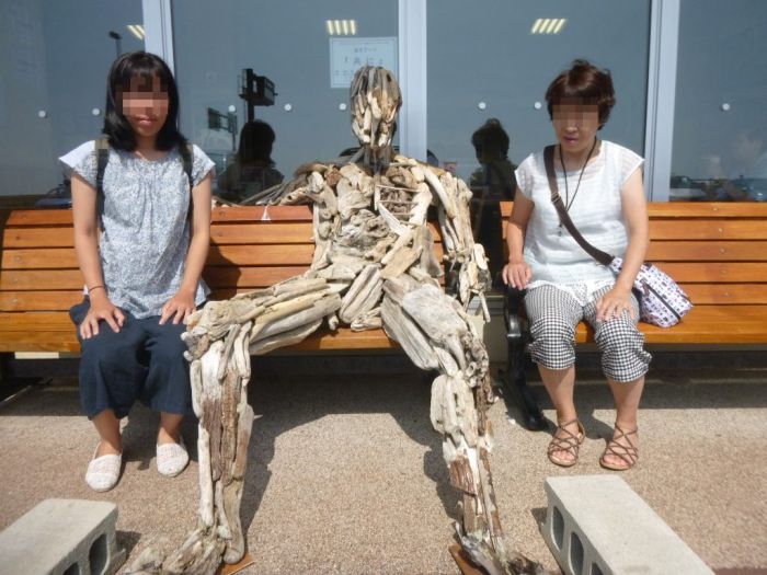 道の駅オスコイにあった がい骨人形 流木で造った作品らしい 人だけどぞっとする |