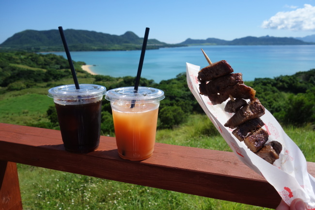 | 本当は石垣牛バーガーを食べた かったけど売り切れでした 残っていた牛串を注文 |