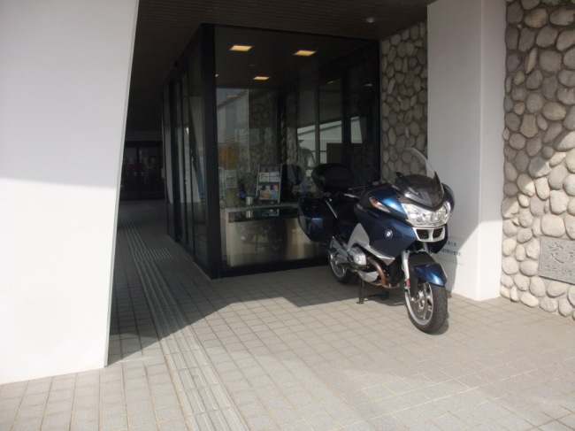 | バイクは屋根付き玄関脇に 停めさせてくれた |