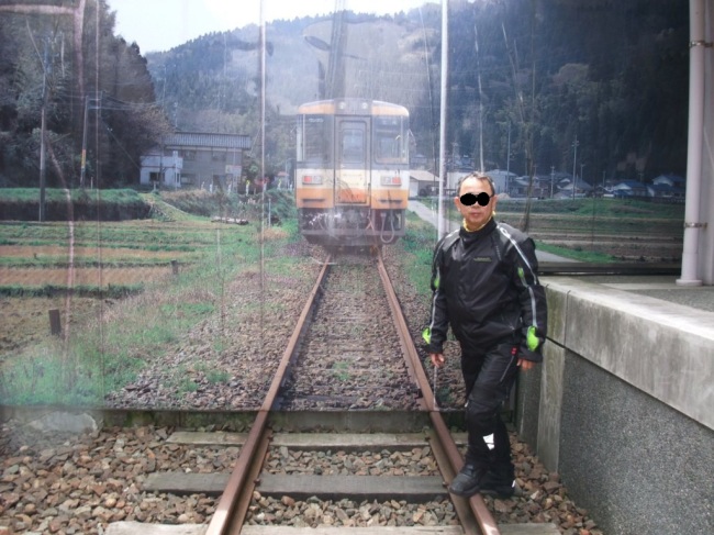 | 輪島駅にある 輪島塗の顔だし看板 |