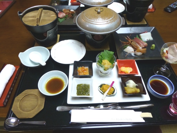 | 本日の夕食 海の幸をメインにウニやあわびが豪華 |