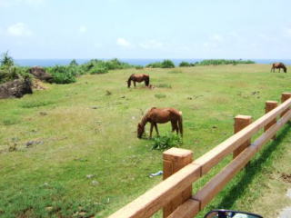与那国馬は小ぶりでメタボ 島で放し飼いにされています |