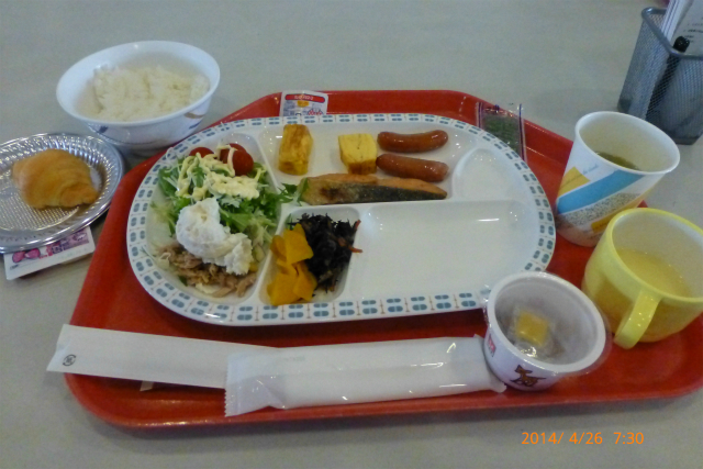 下船の時間が近くなってきたので 朝食を食べにレストランへ おかずが寂しい 夕食1540円 朝食 620円 |