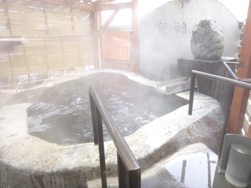 | さっそく温泉に 龍神の湯は露天風呂です ここも毎日男女の入れ替え制です |