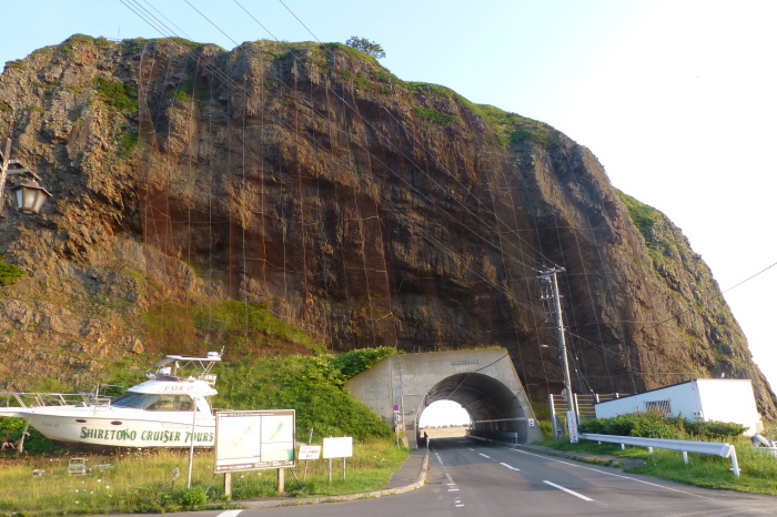 | 港に出ると大きな岩が そびえる 知床のエアーズロック |
