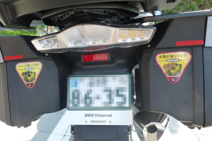 | さっそくパニアに貼って みました 見た人は、ジジイばかやろう とか、ばばぁ気をつけろとか 励ましの言葉を |
