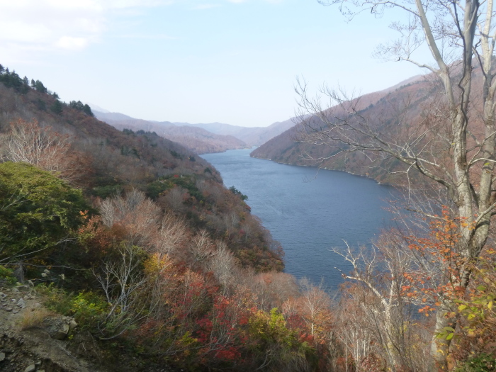 | 細長い湖の淵を 行ったり来たり 37°07'15.5"N 139°11'19.7"E |