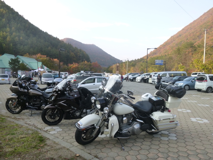 | 紅葉ピークで駐車場も 満杯だったので、 バイクは歩道スペースに |