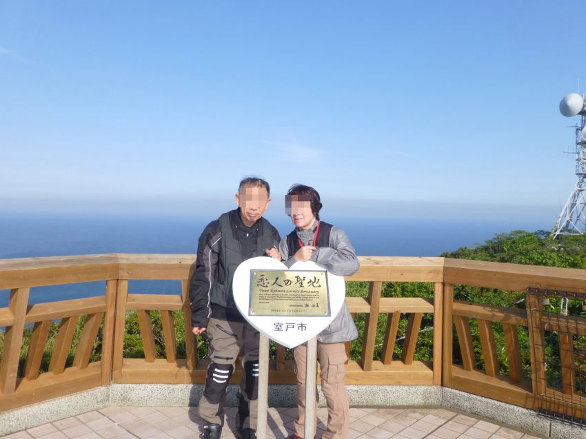 | ここの岬は恋人の聖地の看板がある もう恋人ではないけど記念にパチリ |